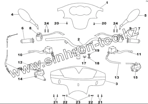 Каталог запасных частей к технике: ЗиД Мотороллер LF-125T-9L. Переключатели и руль