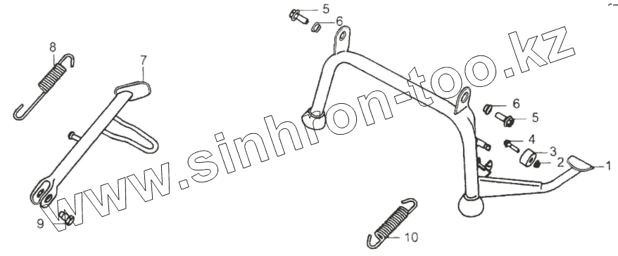Каталог запасных частей к технике: ЗиД Мотороллер LF-150T-6. Боковой упор, центральная подставка