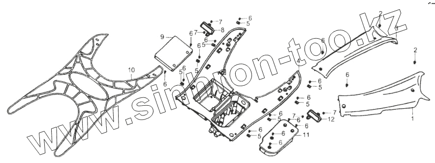 Каталог запасных частей к технике: ЗиД Мотороллер LF-150T-6. Нижнее закрытие