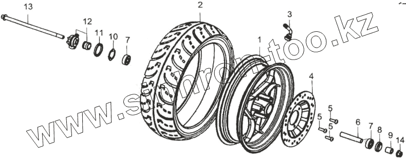 Каталог запасных частей к технике: ЗиД Мотороллер LF-150T-6. Переднее колесо (262004193001)