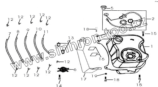 Каталог запасных частей к технике: ЗиД Мотороллер LF-150T-8. Бак топливный в сборе