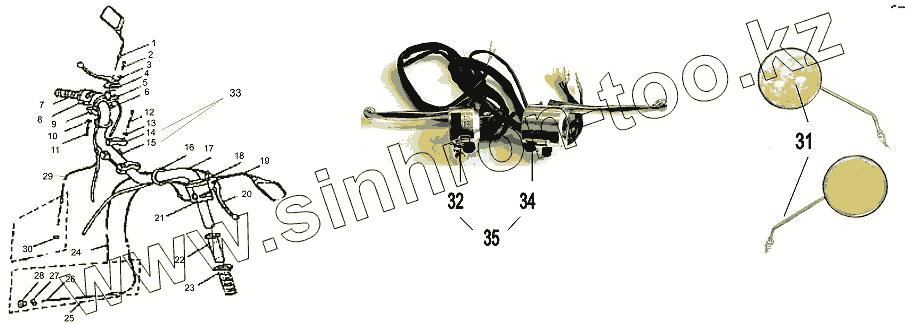 Каталог запасных частей к технике: ЗиД Мотороллер LF-50Q-2. Руль в сборе