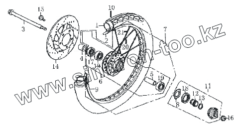 Каталог запасных частей к технике: ЗиД Мотороллер LF-50Q-2А. Колесо переднее в сборе