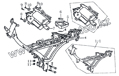 Каталог запасных частей к технике: ЗиД Мотороллер LF-50Q-2А. Рама в сборе