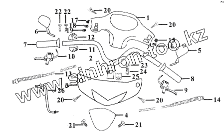 Каталог запасных частей к технике: ЗиД Мотороллер LF-50QT-15. Переключатель, трос и руль