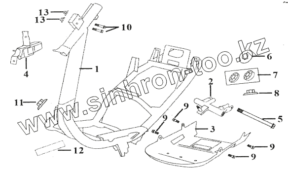 Каталог запасных частей к технике: ЗиД Мотороллер LF-50QT-15. Рама в сборе