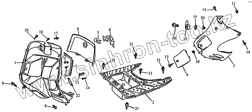 Каталог запасных частей к технике: ЗиД Скутер LF-50QT-8A. Облицовка внутренняя
