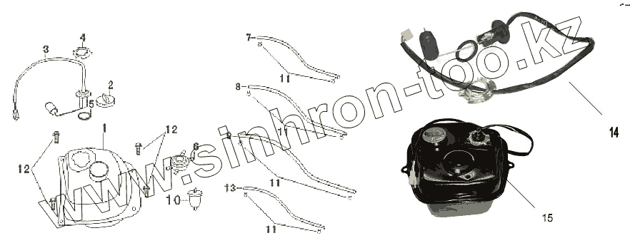| 15 | Бак топливный | Бак топливный в сборе |