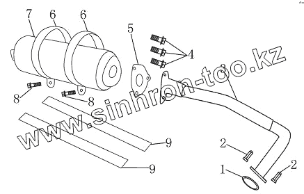 Каталог запасных частей к технике: ЗиД Скутер LF-50QT-8А (M). Глушитель в сборе