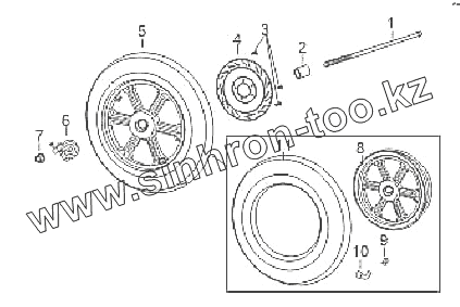 Каталог запасных частей к технике: ЗиД Скутер LF-50QT-8А (M). Колесо переднее в сборе