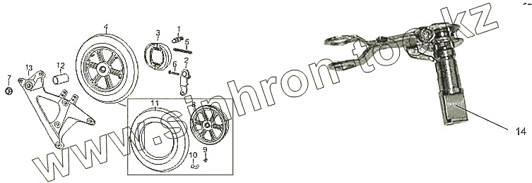 | 14 | Рычаг тормозной | Рычаг тормозной с кулачком в сборе |
