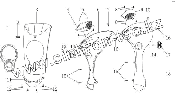 Каталог запасных частей к технике: ЗиД Скутер LF-50QT-8А (M). Облицовка передняя