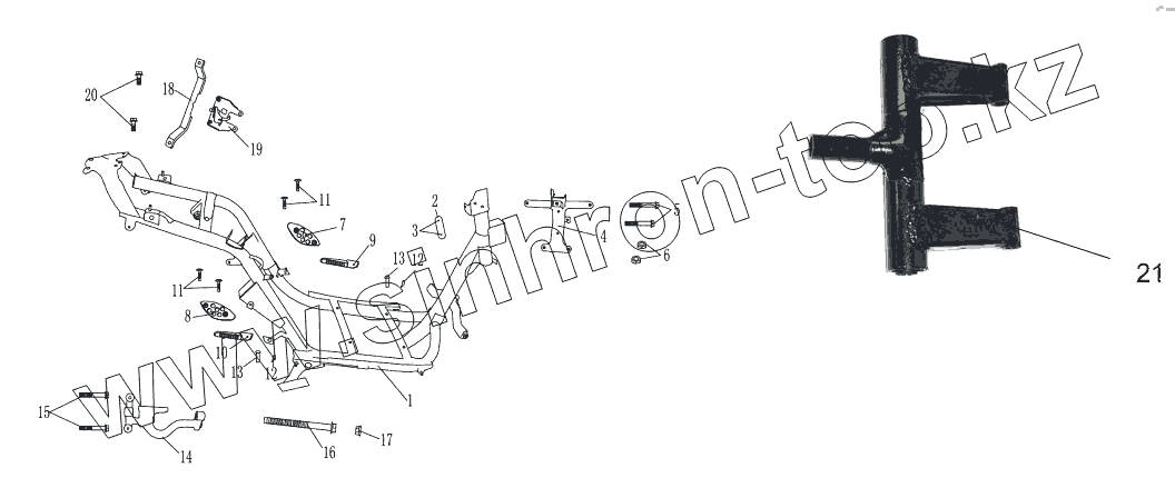 Каталог запасных частей к технике: ЗиД Скутер LF-50QT-8А (M). Рама в сборе