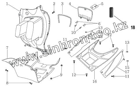 Каталог запасных частей к технике: ЗиД Скутер LF-50QT-8А (M). Закрытие рамы