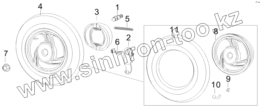 Каталог запасных частей к технике: ЗиД Скутер LF-50QT-9N. Колесо заднее в сборе
