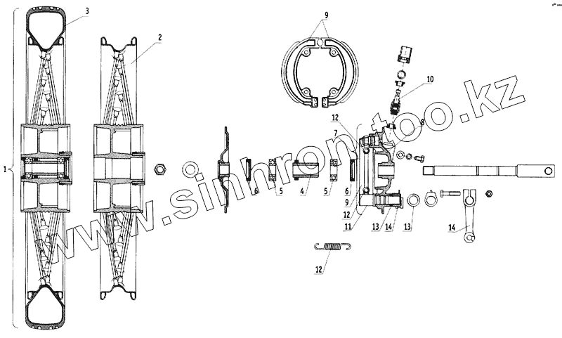 | 14 | 125000801701 | Рычаг тормозной переднего колеса |