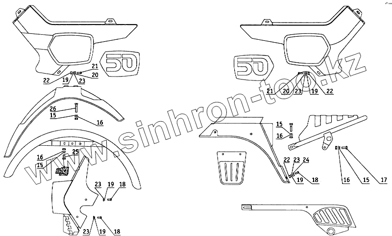Каталог запасных частей к технике: ЗиД-50 "Пилот". Щитки и закрытия