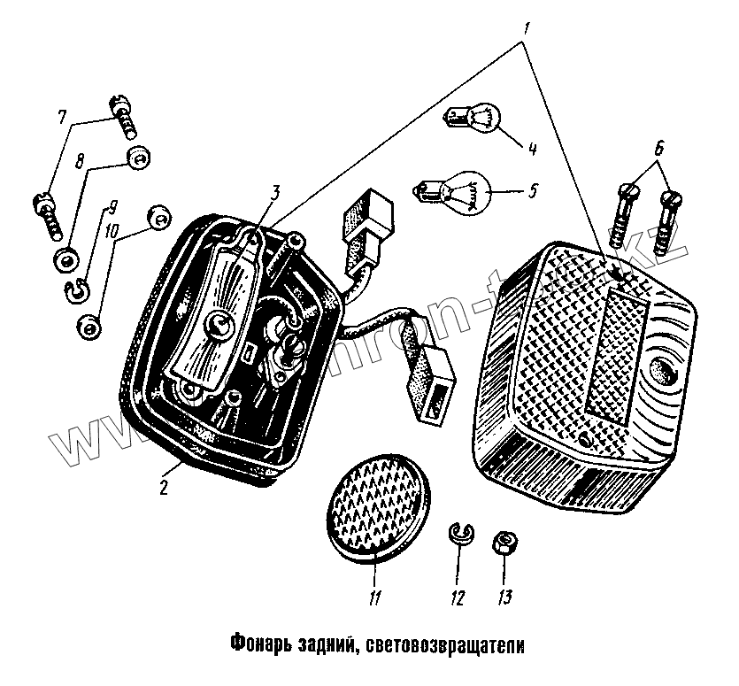 Каталог запасных частей к технике: ЗиД "Восход". Фонарь задний, световозвращатели