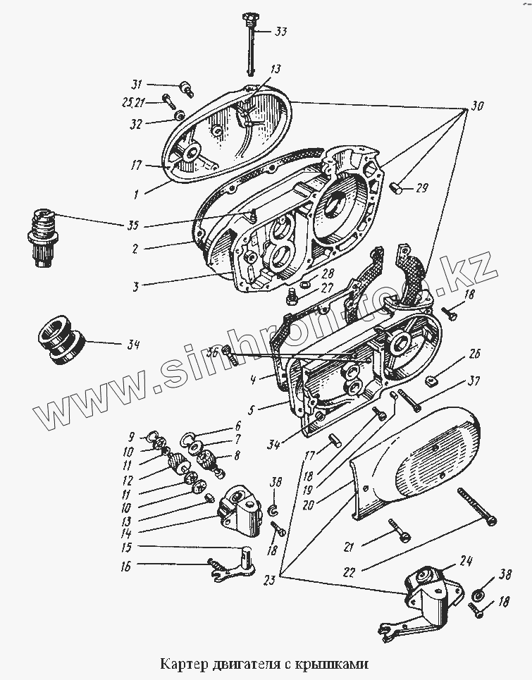 Каталог запасных частей к технике: ЗиД "Восход". Картер двигателя с крышками