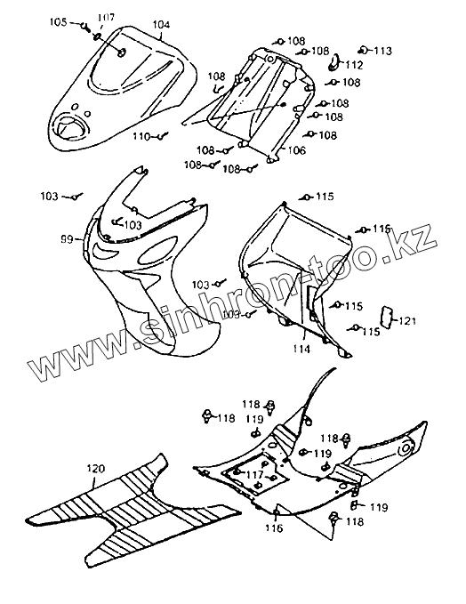 Каталог запасных частей к технике: Zongshen ZS50QT-4. Передняя облицовка, подножки