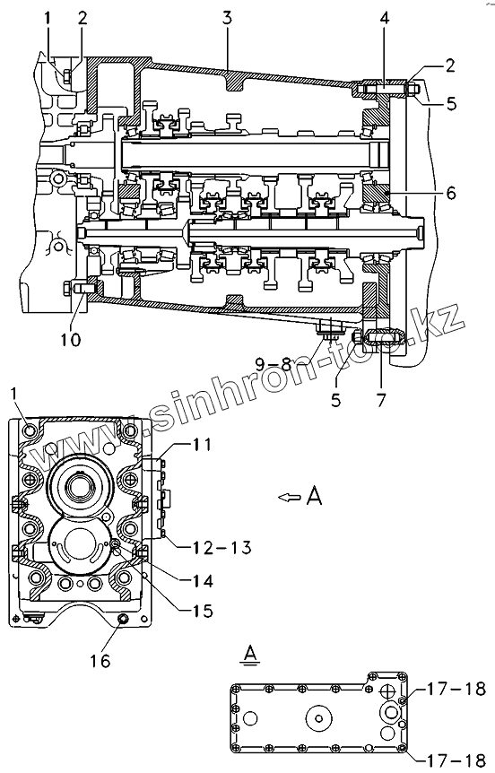 Каталог запасных частей к технике: AGCO Allis AA6.190. Transmission, Housing - Closing