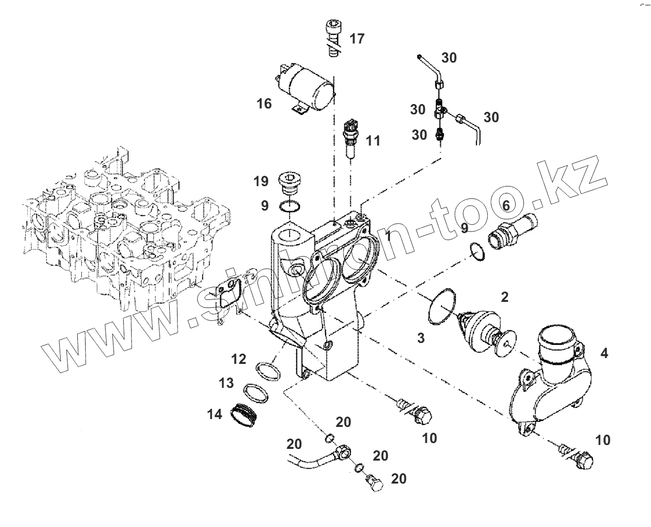 Каталог запасных частей к технике: AGCO Fendt-936 часть1. Двигатель-корпус термостата