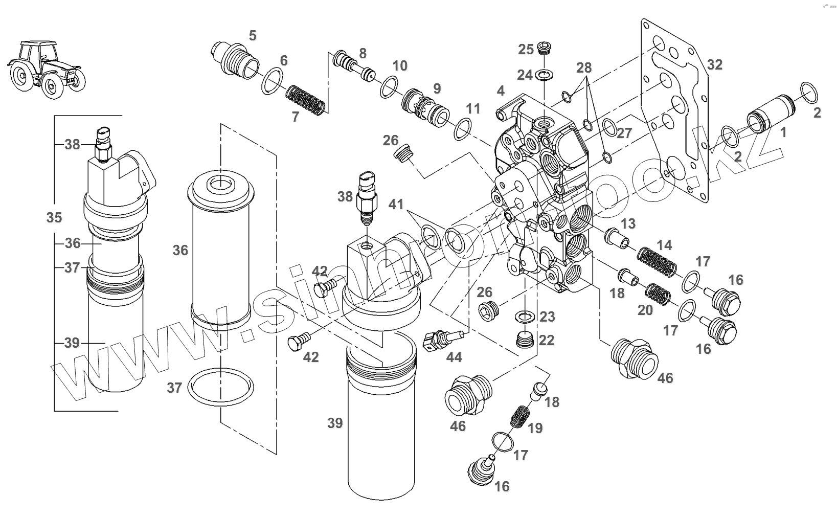 Каталог запасных частей к технике: AGCO Fendt-936 часть1. Коробка передач-блок клапанов