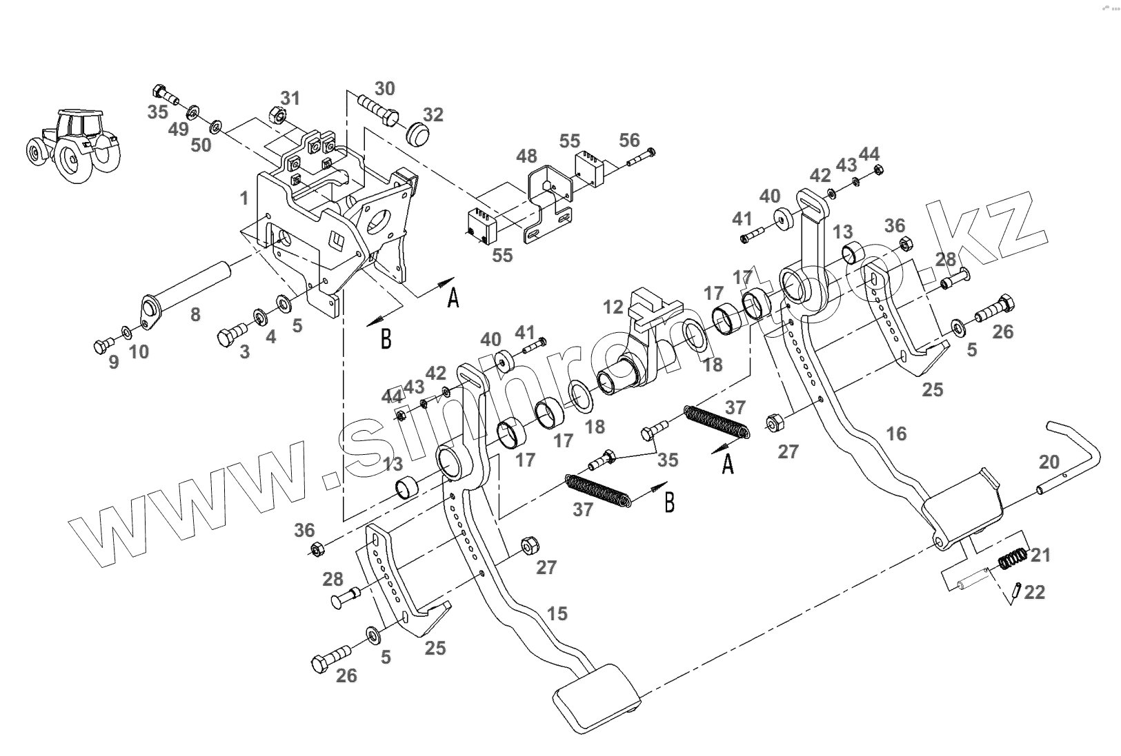 Каталог запасных частей к технике: AGCO Fendt-936 часть1. Коробка передач-тормоз ножной