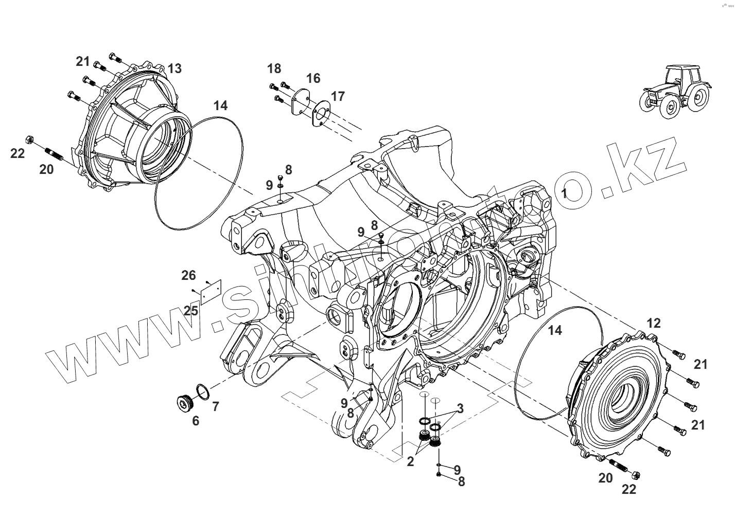 Передний мост-корпус шарнира