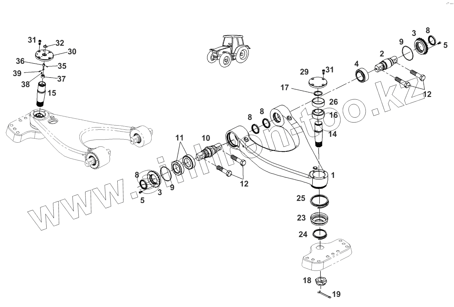 Каталог запасных частей к технике: AGCO Fendt-936 часть2. Передний мост-поперечный рычаг подвески