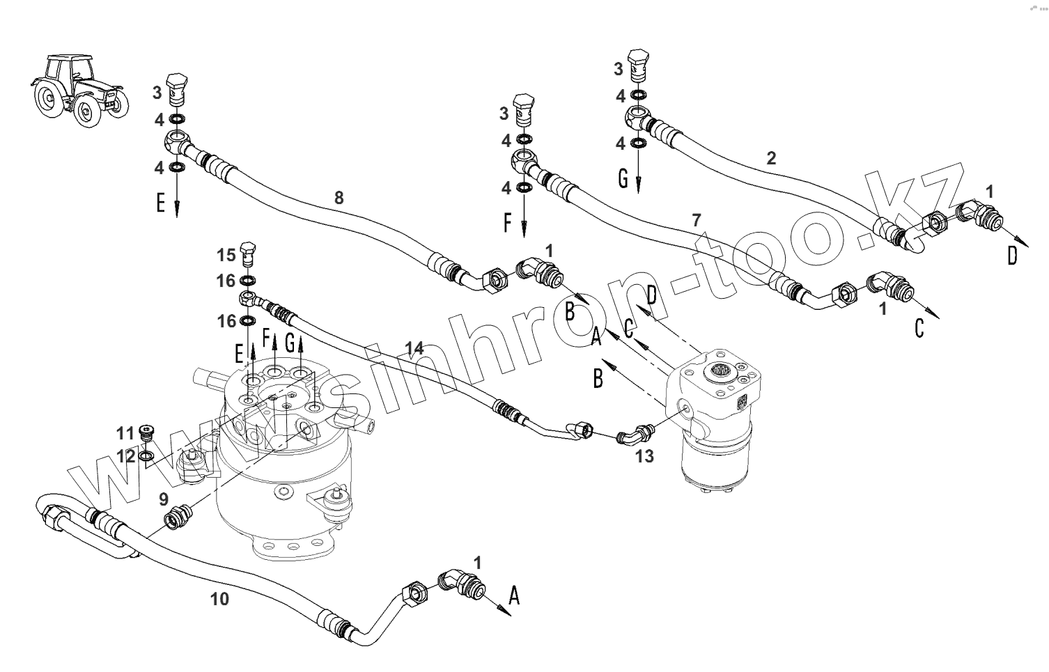 Каталог запасных частей к технике: AGCO Fendt-936 часть3. Гидравлическое соединение-трубопровод гидравлический рулевого управления