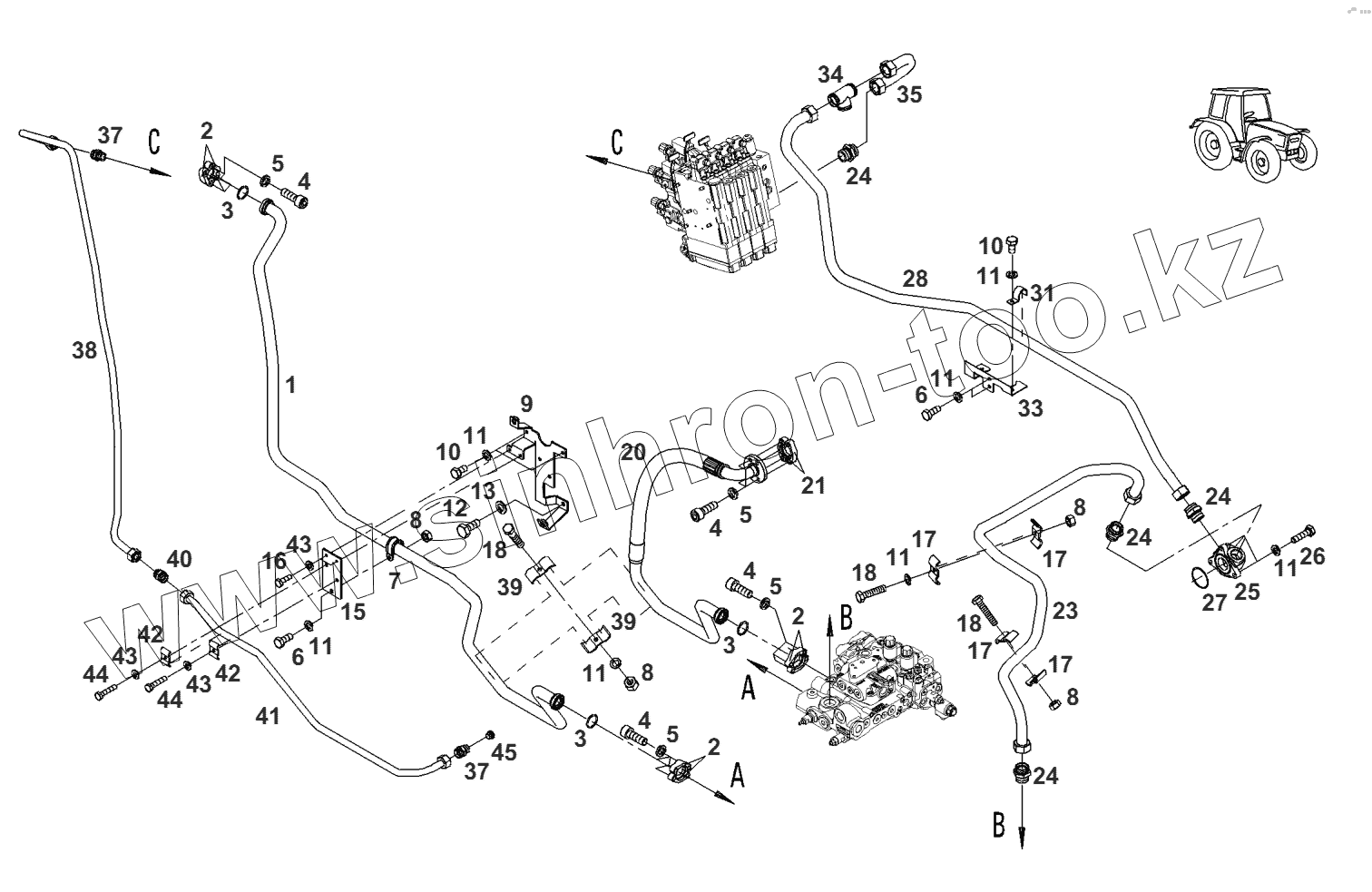 Каталог запасных частей к технике: AGCO Fendt-936 часть3. Гидравлическое соединение-трубопровод основного контура
