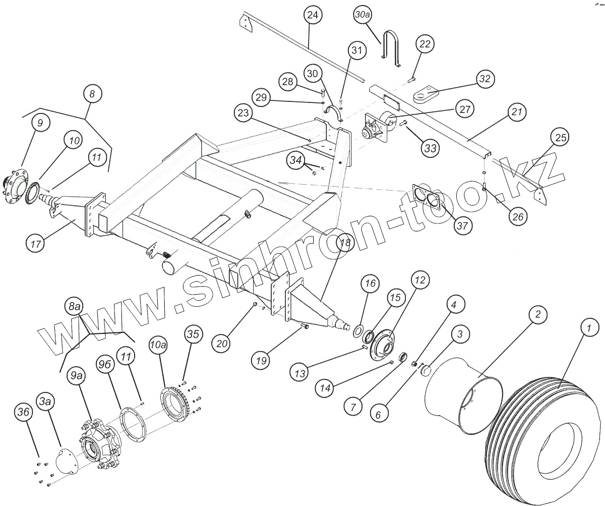 Каталог запасных частей к технике: Агро КУЗБАСС ПК-6,1. Ось одноосного бункера V=10м3