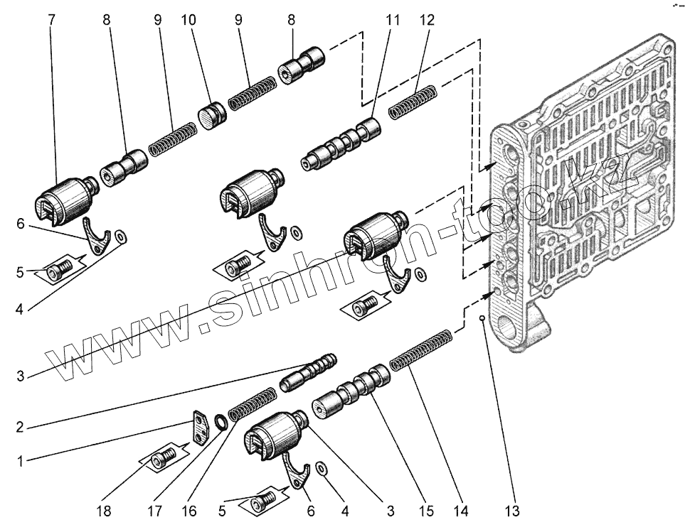 Установка переключения шести синхронизированных передач
