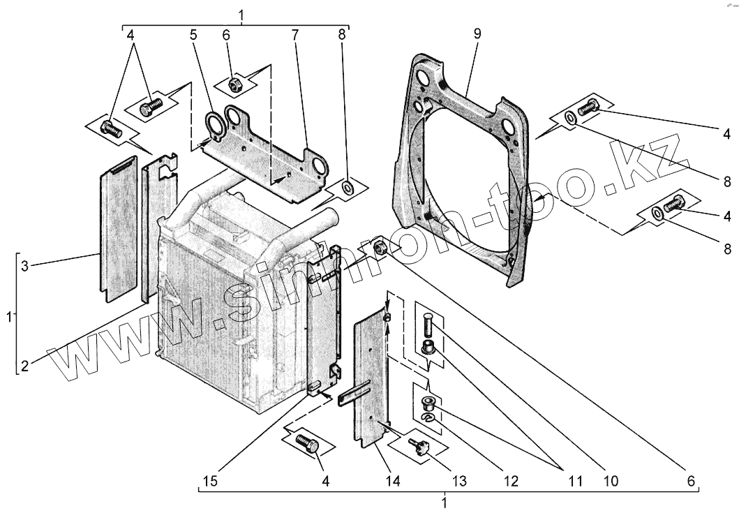 Каталог запасных частей к технике: Агротехмаш АТМ-5280. Установка блока радиаторов