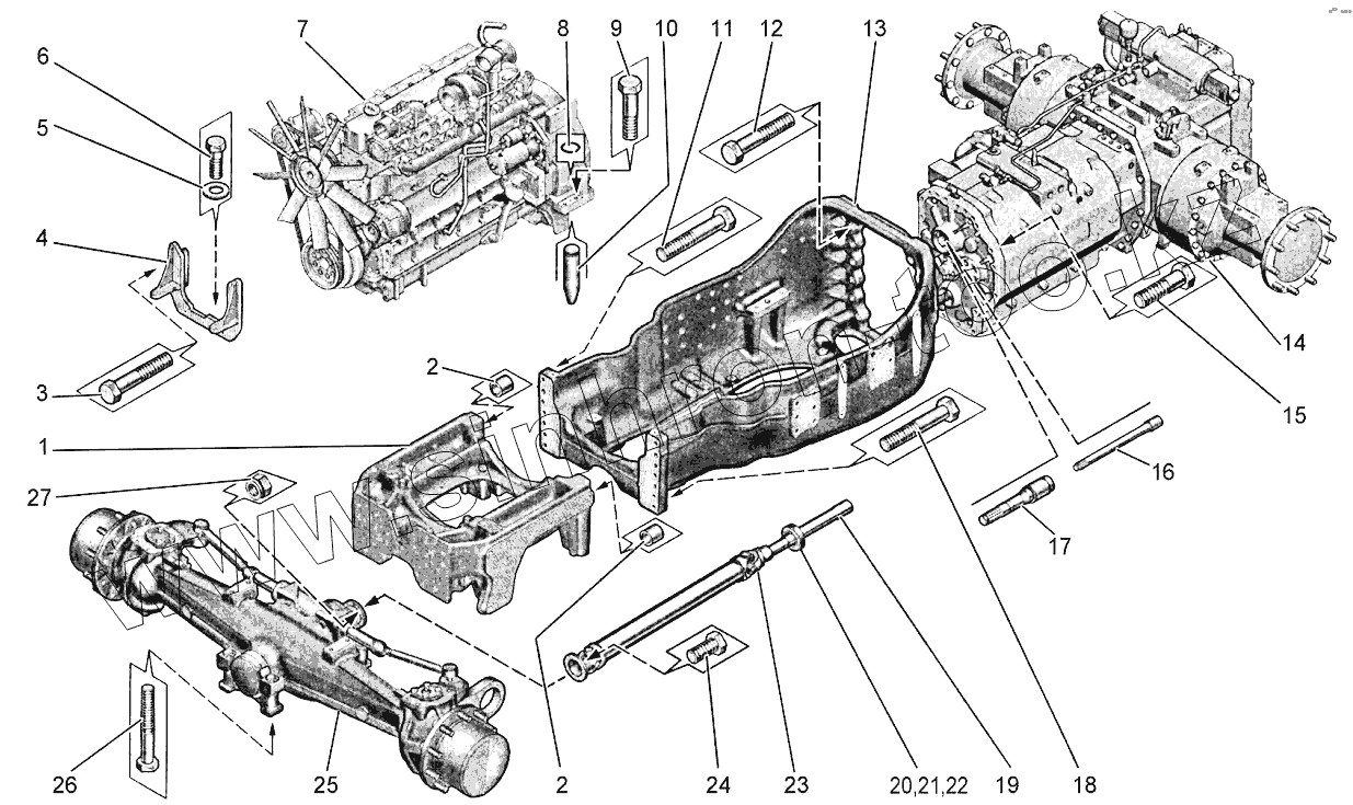 Каталог запасных частей к технике: Агротехмаш АТМ-5280. Установка ходовой части и двигателя