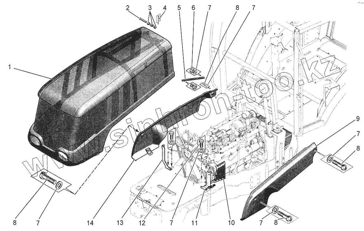 Каталог запасных частей к технике: Агротехмаш АТМ-5280. Установка капота и кожухов