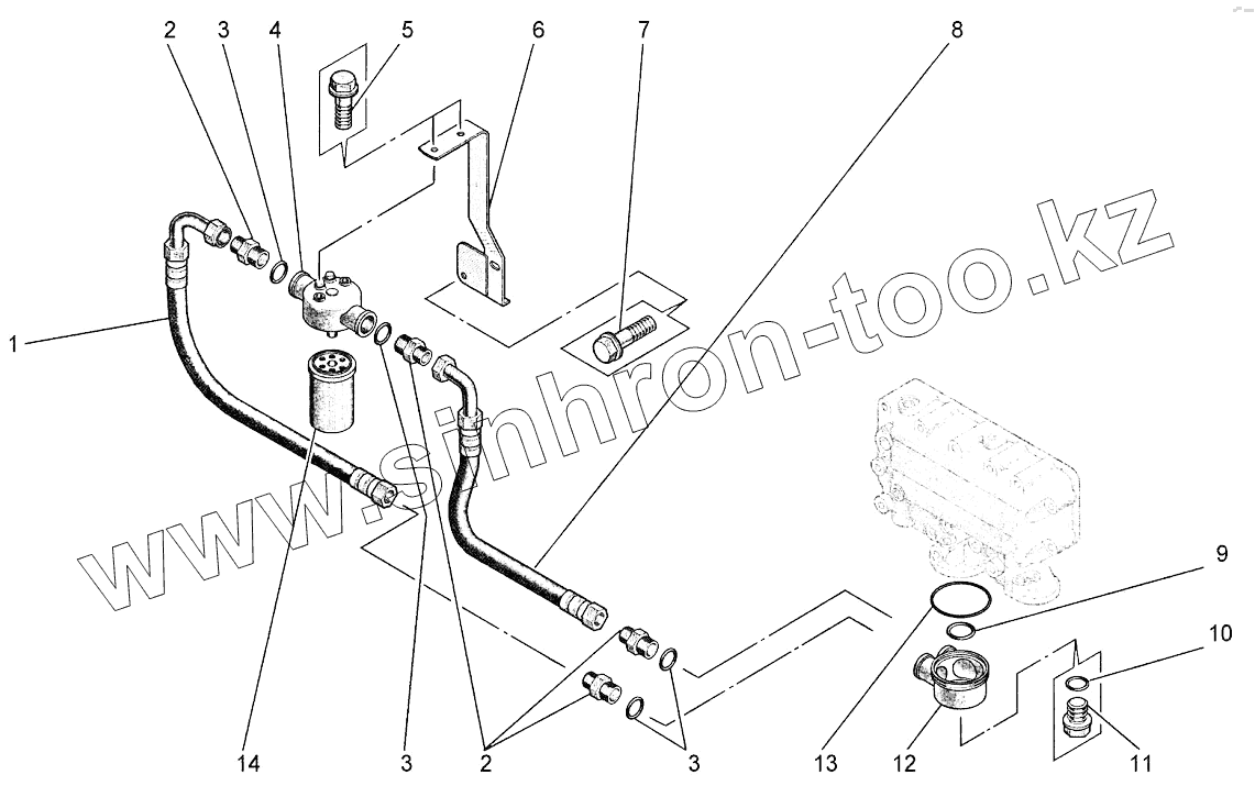 Каталог запасных частей к технике: Агротехмаш АТМ-5280. Установка масляного фильтра