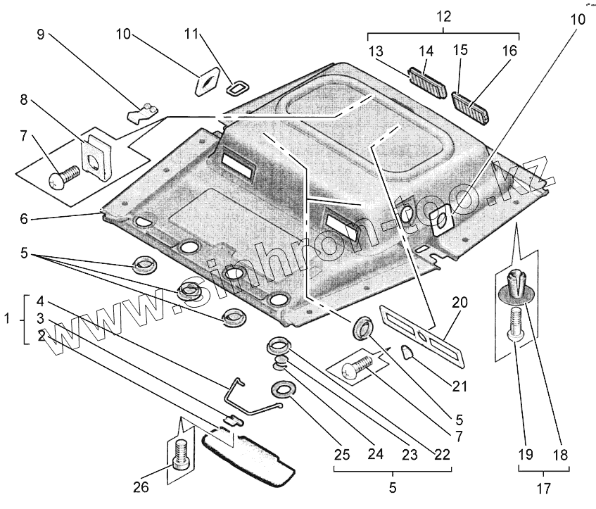 Каталог запасных частей к технике: Агротехмаш АТМ-5280. Установка панели крыши внутренней