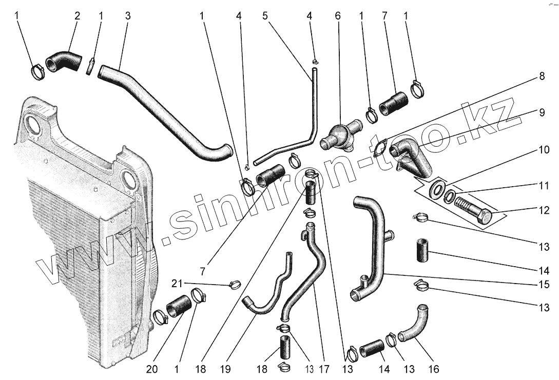 Каталог запасных частей к технике: Агротехмаш АТМ-5280. Установка патрубков радиатора