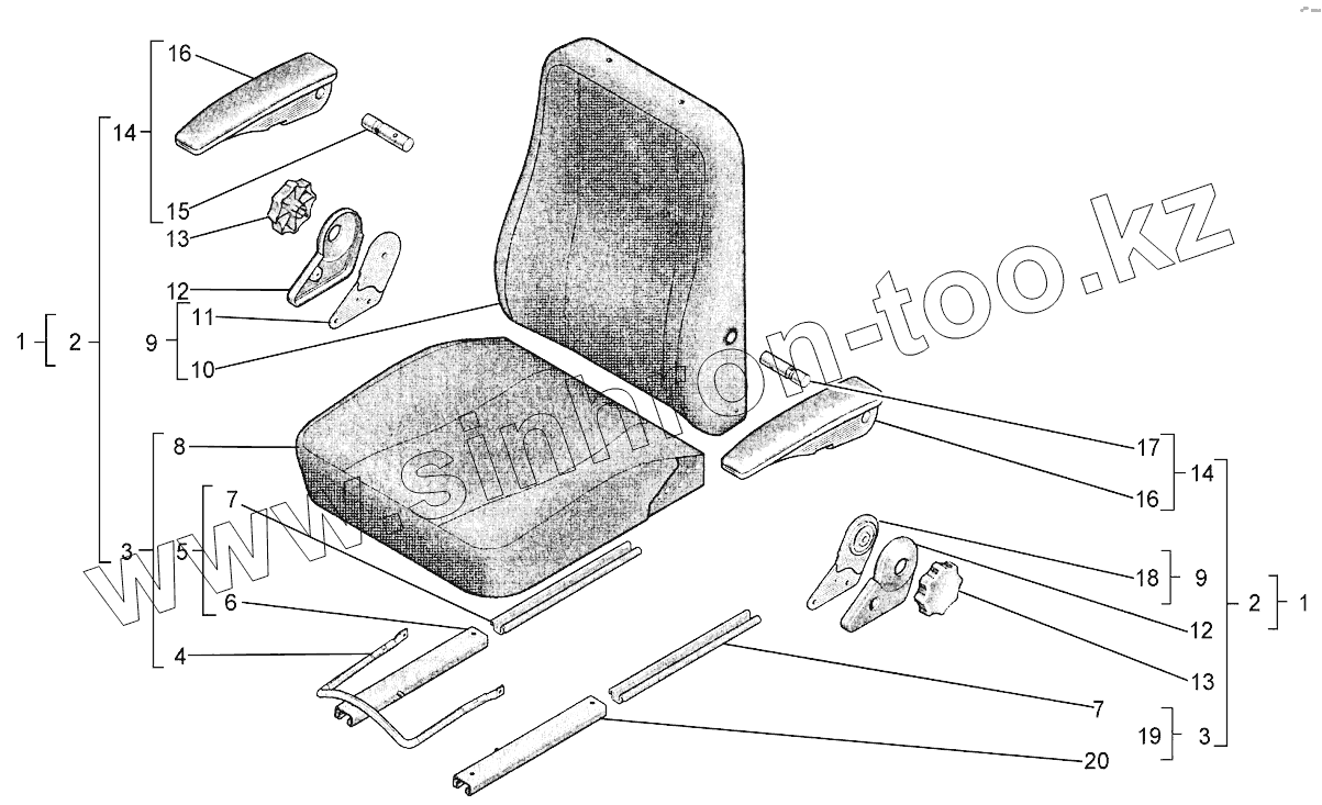 Каталог запасных частей к технике: Агротехмаш АТМ-5280. Установка сиденья водителя