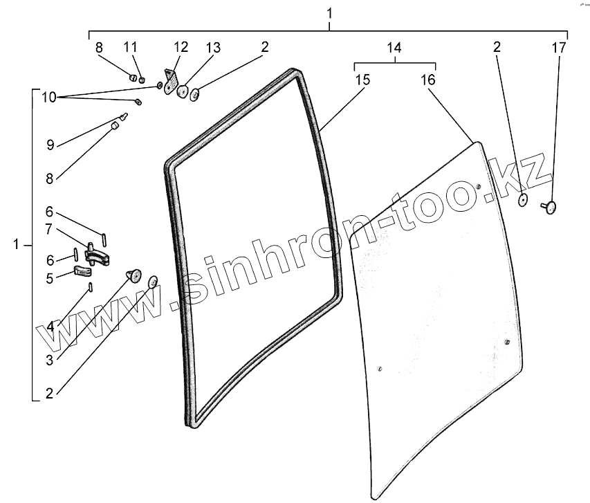 Каталог запасных частей к технике: Агротехмаш АТМ-5280. Установка стекла заднего левого