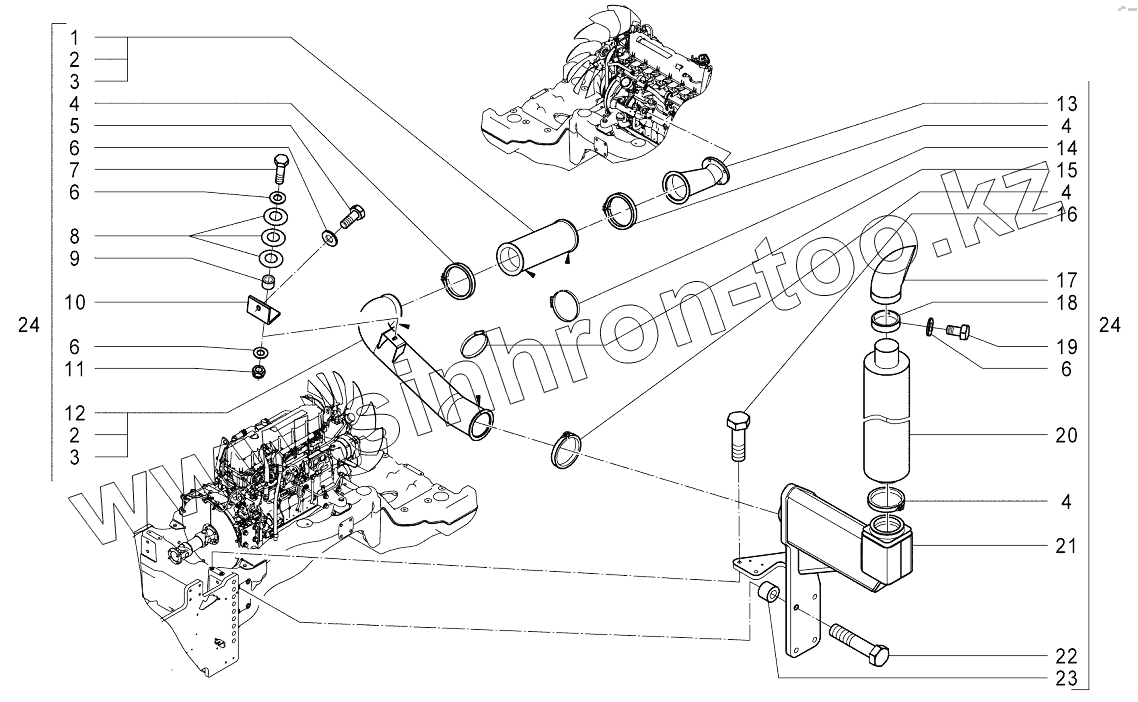 Каталог запасных частей к технике: Агротехмаш АТМ-7360. A402 Установка системы выпуска отработавших газов