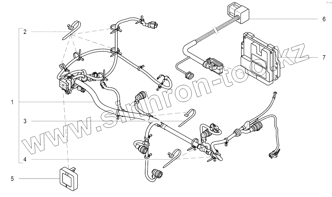 Каталог запасных частей к технике: Агротехмаш АТМ-7360. H101 Жгуты проводов моторного отсека, блок управления