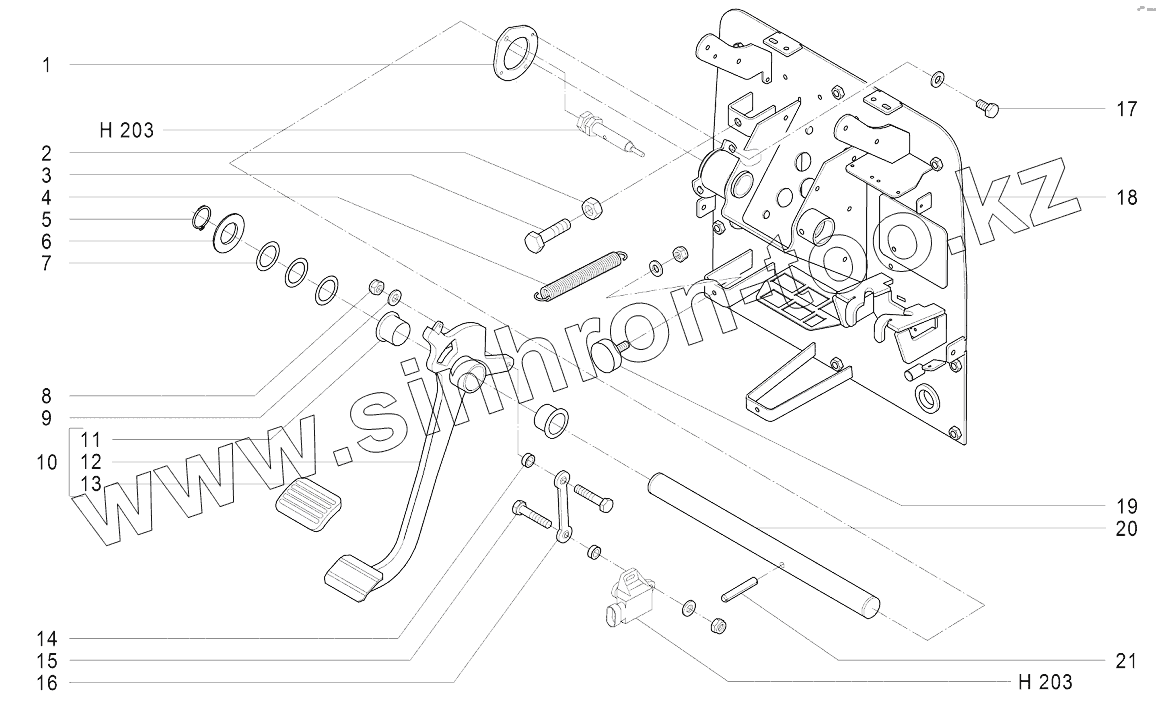 Каталог запасных частей к технике: Агротехмаш АТМ-7360. K104 Плита монтажная с педалью сцепления