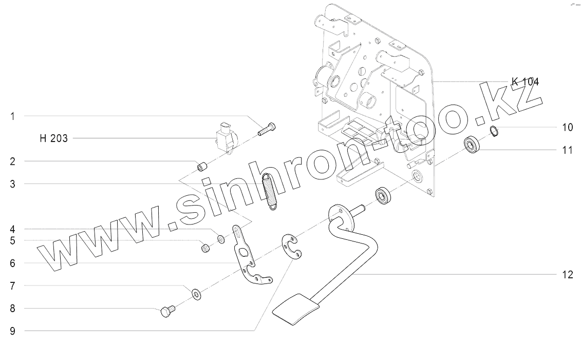 Каталог запасных частей к технике: Агротехмаш АТМ-7360. K106 Плита монтажная с педалью газа