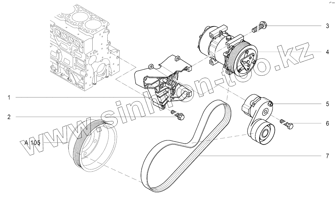 Каталог запасных частей к технике: Агротехмаш АТМ-7360. M101 Установка компрессора кондиционера