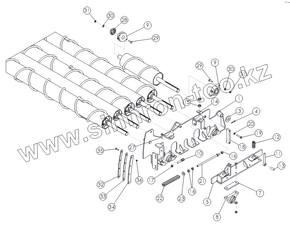 Каталог запасных частей к технике: Amity Wic Harvester 12 row 22s. REAR CLEANING ROLL MOUNTING PACKAGE