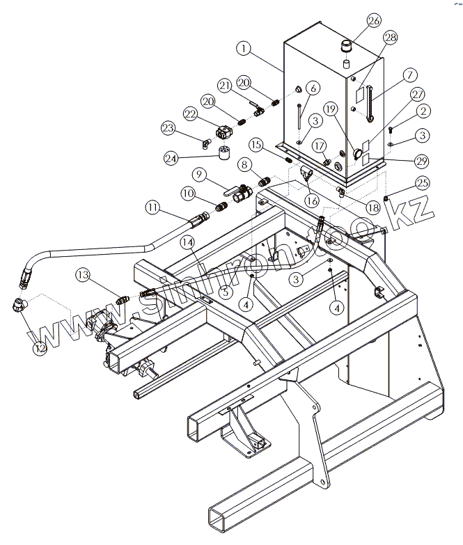 Каталог запасных частей к технике: Amity Wic Harvester 6 row 22s. Гидравлический бак