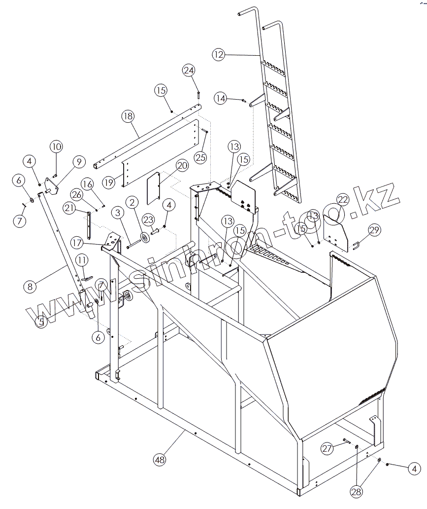 Каталог запасных частей к технике: Amity Wic Harvester 6 row 22s. Накопительный бункер